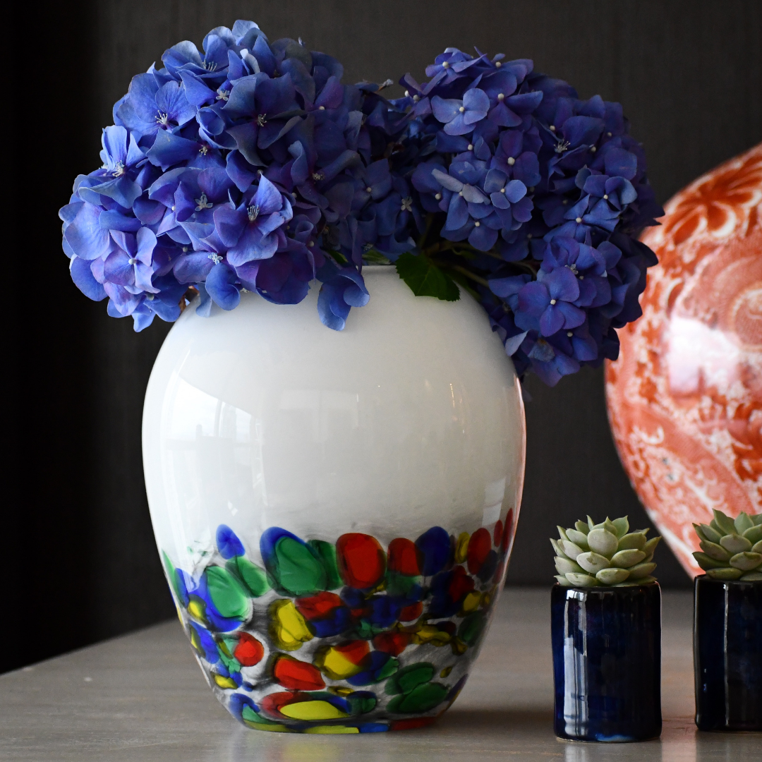 This vase is cause for celebration - pop the champagne and let the confetti fly as you gather round the bold centerpiece. The Murano art glass vase is from the 1960s.