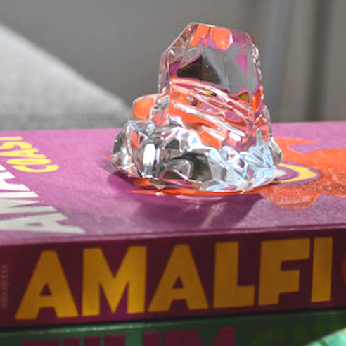 Some of us conquer big mountains and some of us conquer little mountains. What matters is that we are all trying. This beautiful vintage art glass mountain is an unusual sculptural accent piece to remind you of the hurdles you have overcome. It is marked on the base "Made in Germany, FM, 1989".