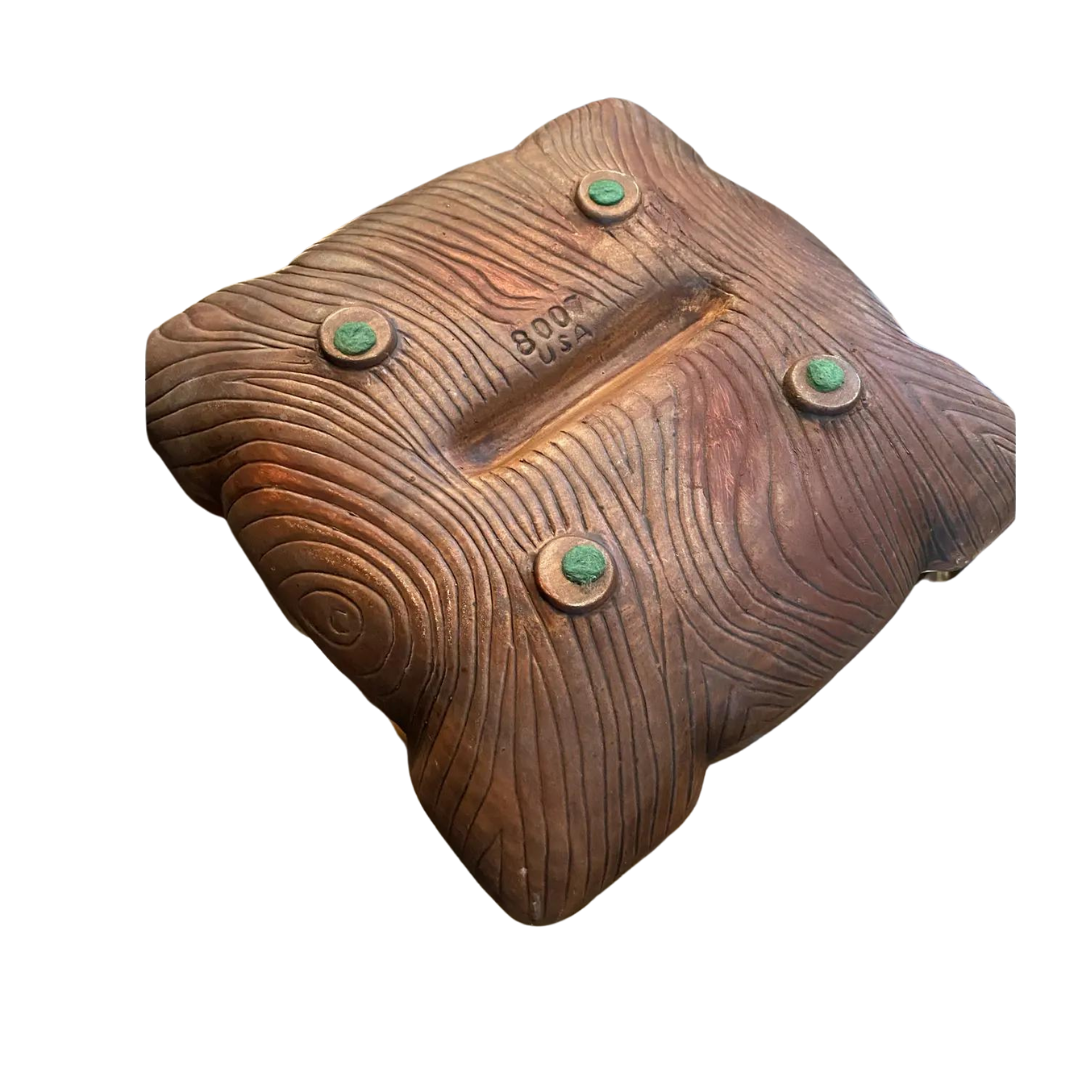 This mid century pottery bright red ashtray has a faux bois underside, so you know it's cool (French = bougie)