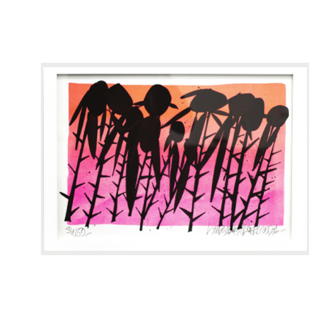 Ludovilk Myers was born, lives, and now works in a forest in the dark zone of the Paris suburbs. He discovered black metal and horror moves at age 10 and moved on to magic cards and Warhammer at age 12. Myers’ art is scattered with striking shapes and colors, beckoning viewers into the depths of a dark fantasy world. Maleficent would definitely be a fan.