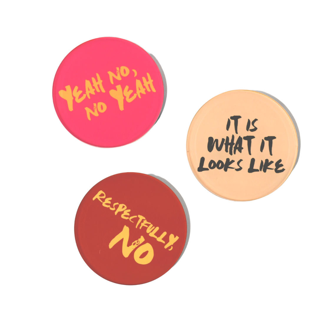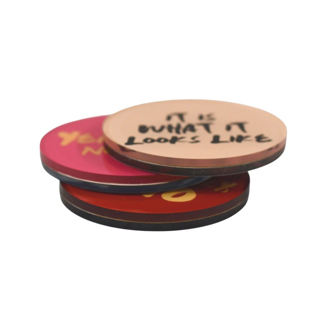 Sold as a set of 3 unique coasters. Each coaster has a different design on either side. Set comes with 1 of each.