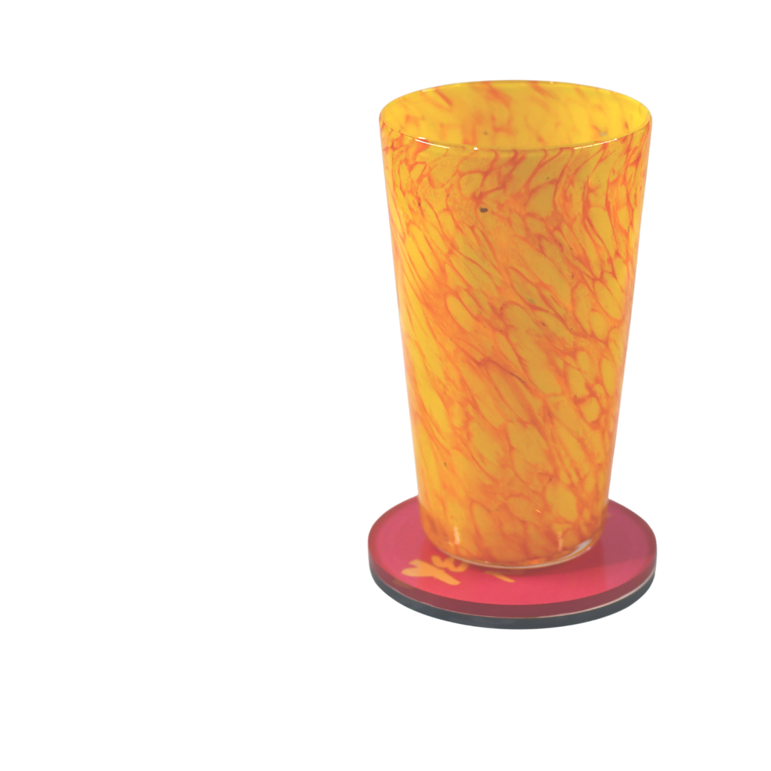 These coasters are designed by Den XYZ and handmade. Each coaster has a different design on either side. The set comes with 3 coaster, 1 of each.