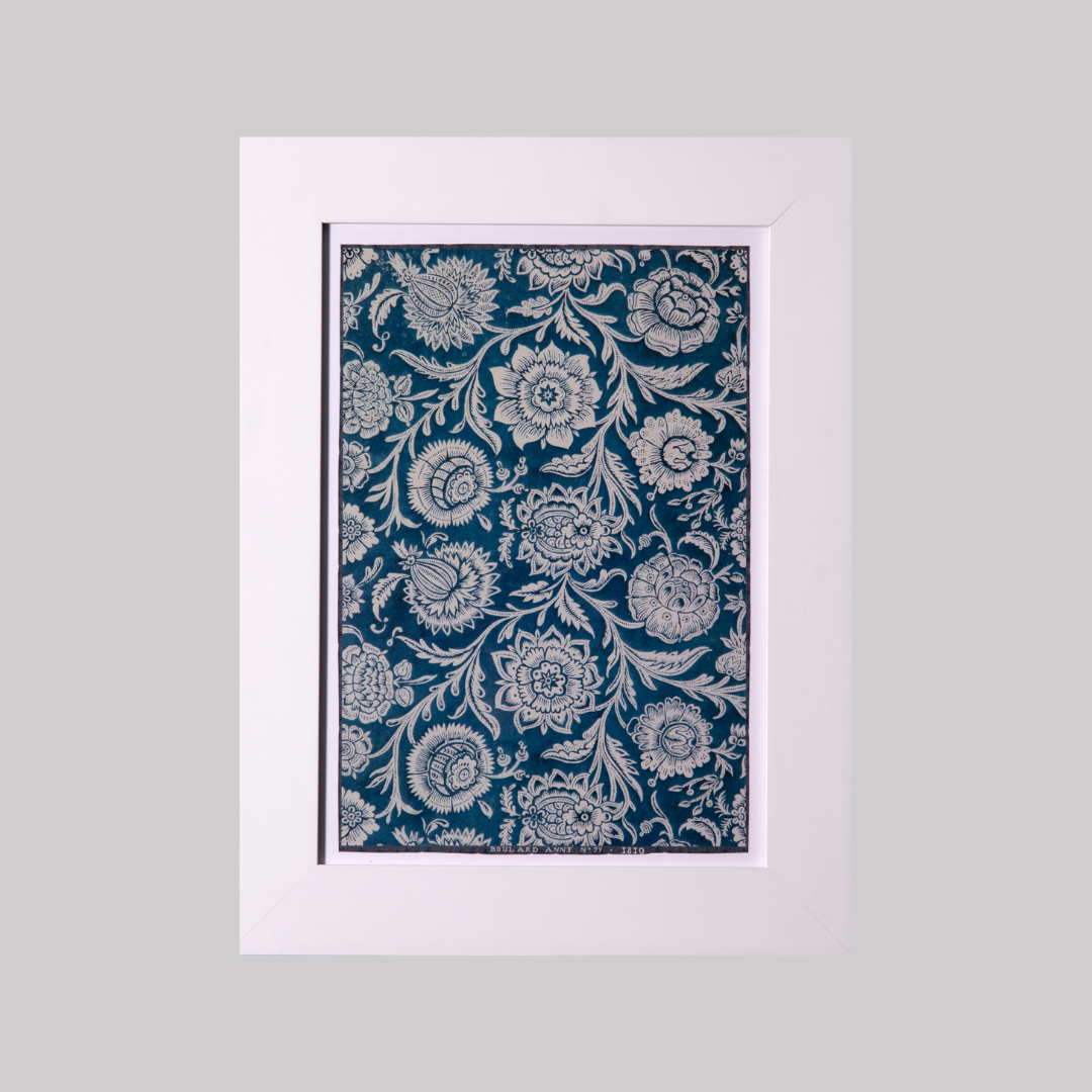 Made by the manufacturer Boulard, this domino paper features a flowery ramage made up of pomegranate flowers, carnations, and peonies. The original design was printed by means of engraved wooden-blocks in 3 colors. This wallpaper with floral motifs was created in the spirit of domino papers.