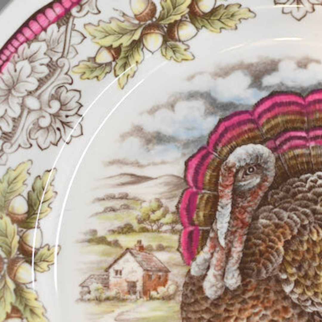 Den XYZ presents Victorian English Pottery with our own customized take. We had these vintage platters hand-painted with you in mind. There is only one in each of 4 colorways so don't wait too long to decide. Go ahead and get the conversation started at your holiday table with this colorful addition. Please note that the hand embellishment will create unique variations in each item.
