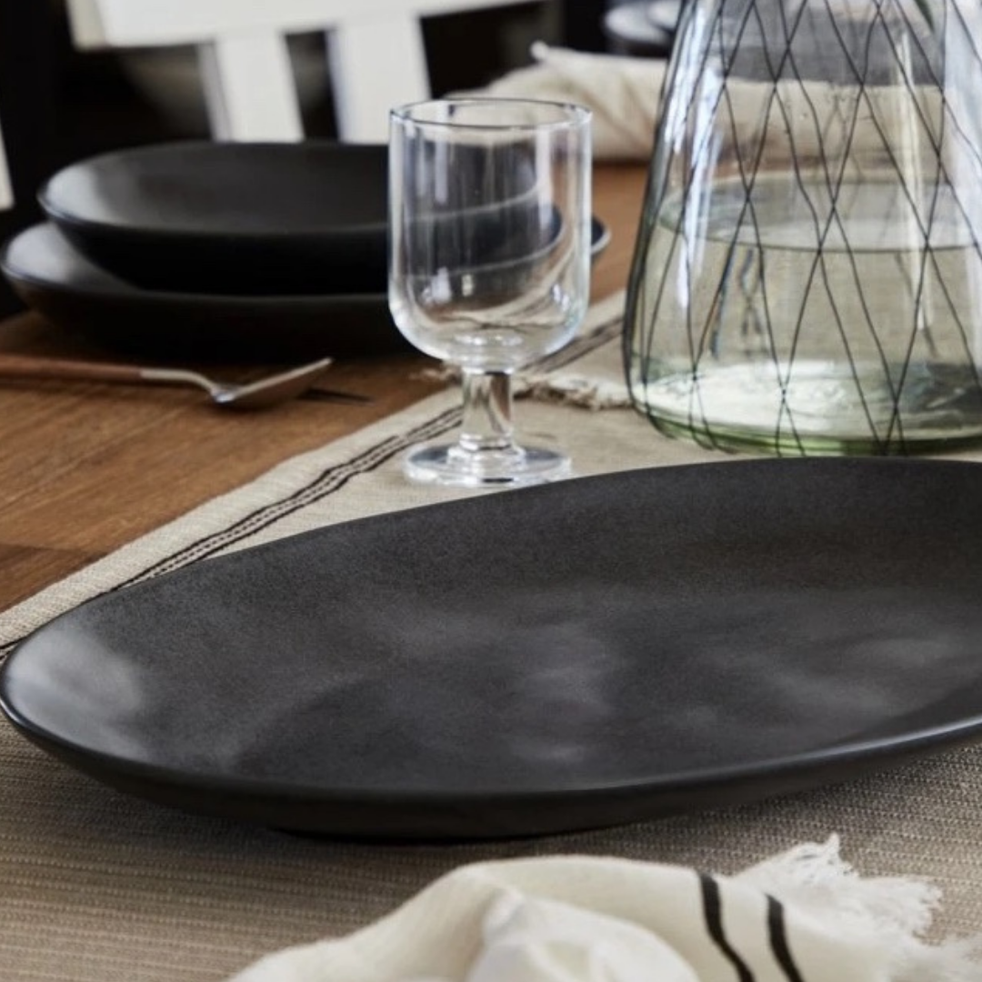 Curvy and sophisticated fine stoneware from Costa Nova. This versatile platter is a winner. Nested in elegance and sexy silhouettes, Livia presents itself as a modern approach to tableware. The organic look and feel of this handcrafted piece is presented in matte black.