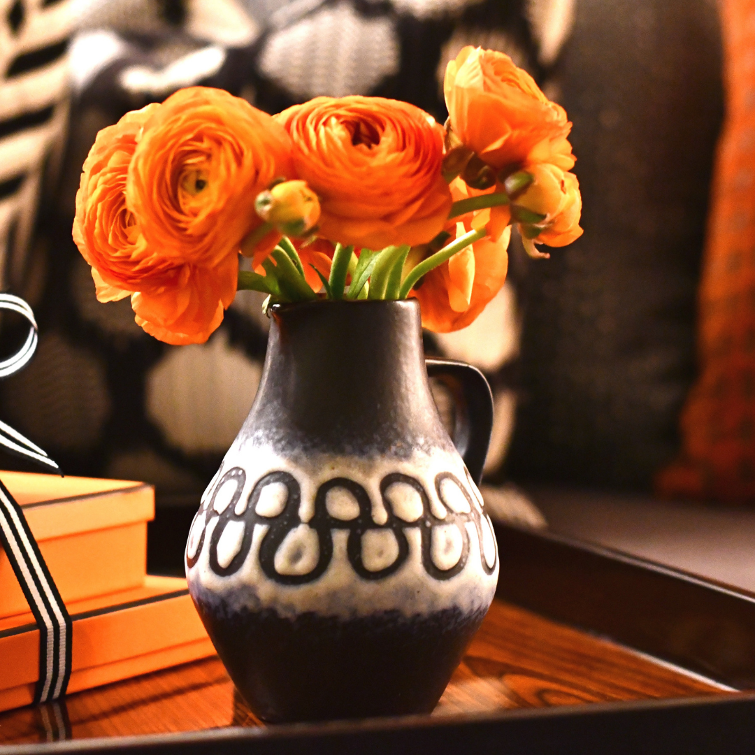 This pitcher is vintage West German Pottery from the 1960s. W. Germany is incised to the base with the model number.