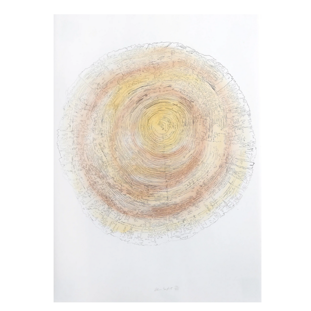 Did you know that tree rings can tell how old a tree is and what the weather was like during each year of the tree's life. This tree-trunk series by Alan Sonfist is both dreamy and calming with its soft palette and ode to nature. These 4 pieces, framed and hung as a series, would look beautiful over a sofa, bed, or large piece of furniture.