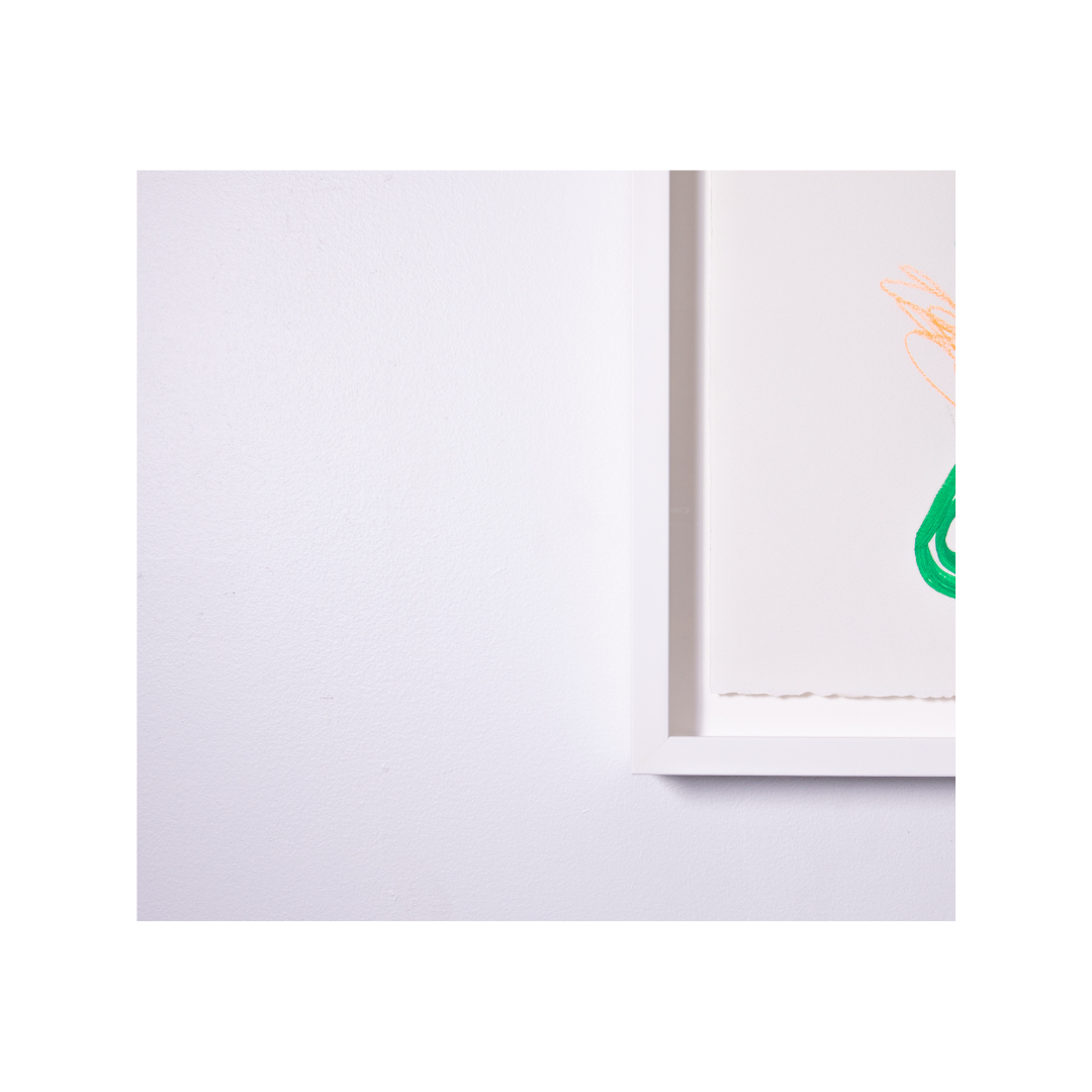 Framing: Raised float with 1 inch white mat all around and white wood frame.