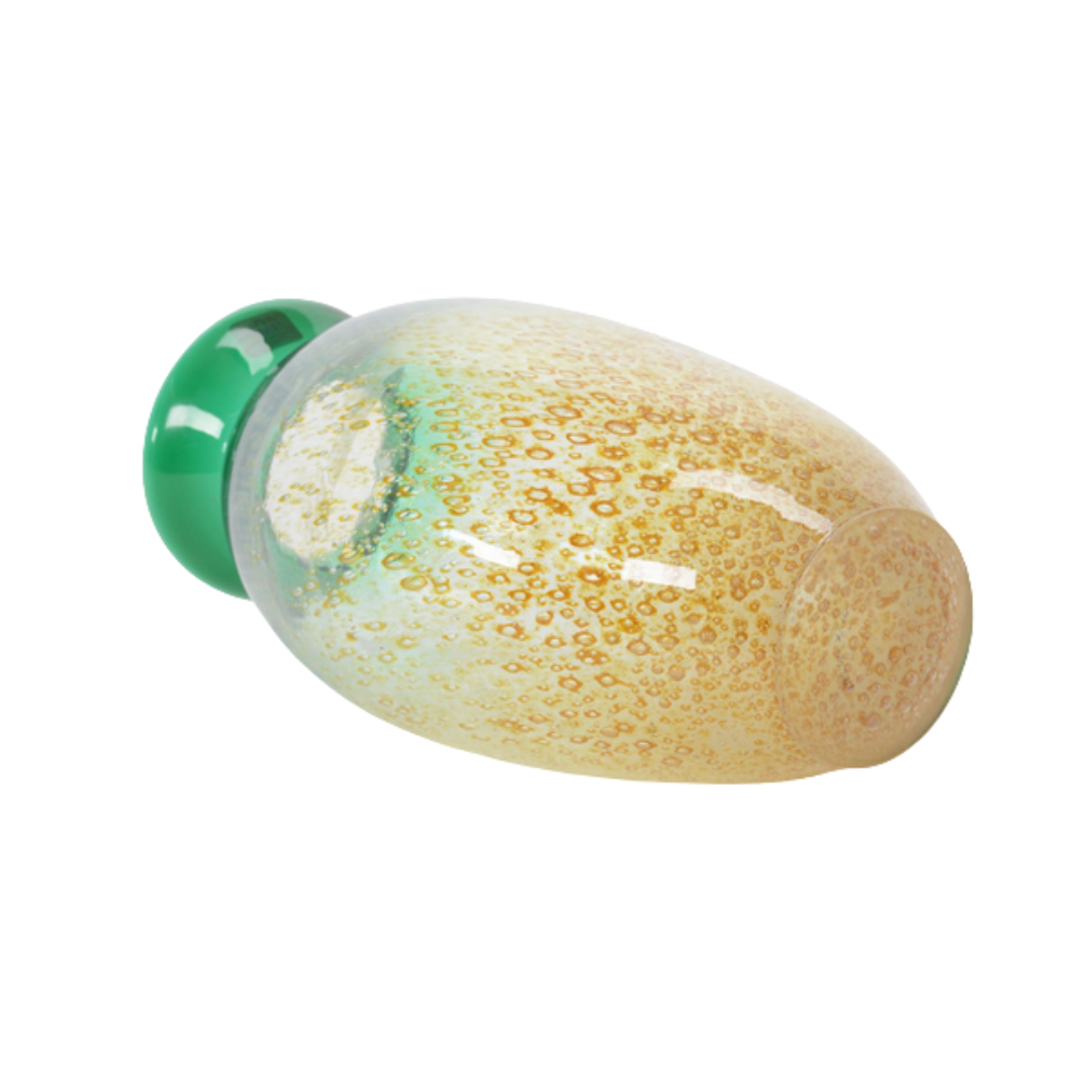 This tall vase has a gradient design from the emerald green shading at the top down to the yellow mottled controlled bubble design at the base. The perfect vase to make those flowers from the bodega around the corner really pop.